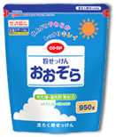 柔軟剤なしでやわらか仕上げ、 吸収性を損なわず しっかりキレイ。 粉せっけん おおぞら |