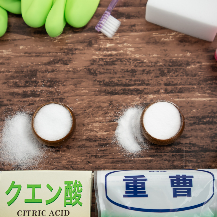 クエン酸は、汚れをゆるませて落としやすくする作用があります。重曹は、やわらか粒子+アルカリの力で汚れをすっきり落とします。過炭酸ナトリウムオキシ漂白剤は、弱アルカリ性のため、油や手あか汚れを落としやすくする働きがあります。
